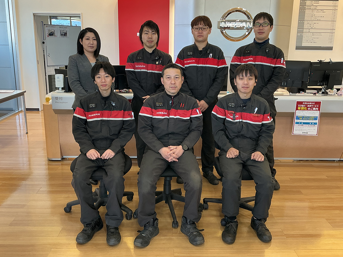 受付から車検、点検、修理まで日産の資格を取得した経験豊富なテクニカルスタッフが1台1台まごころをこめて対応いたします。どんなことでもお気軽にご来店またはご相談ください。お待ちいたしております。